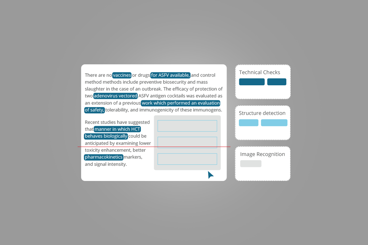 Trained on millions of published articles, tools which cover technical and language checks and suggest fixes.