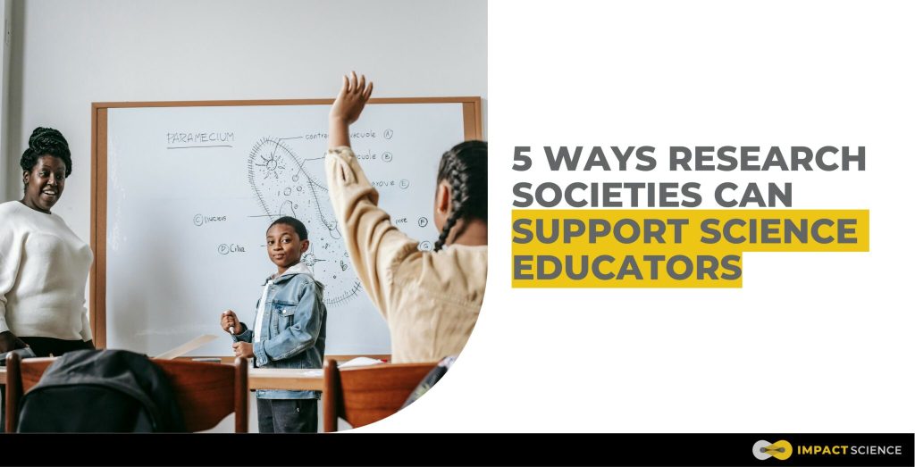 By supporting science education and educators, research societies stand to gain from larger, more diverse, and highly motivated future memberships, along with an improved public image and acknowledgment of their valuable work.