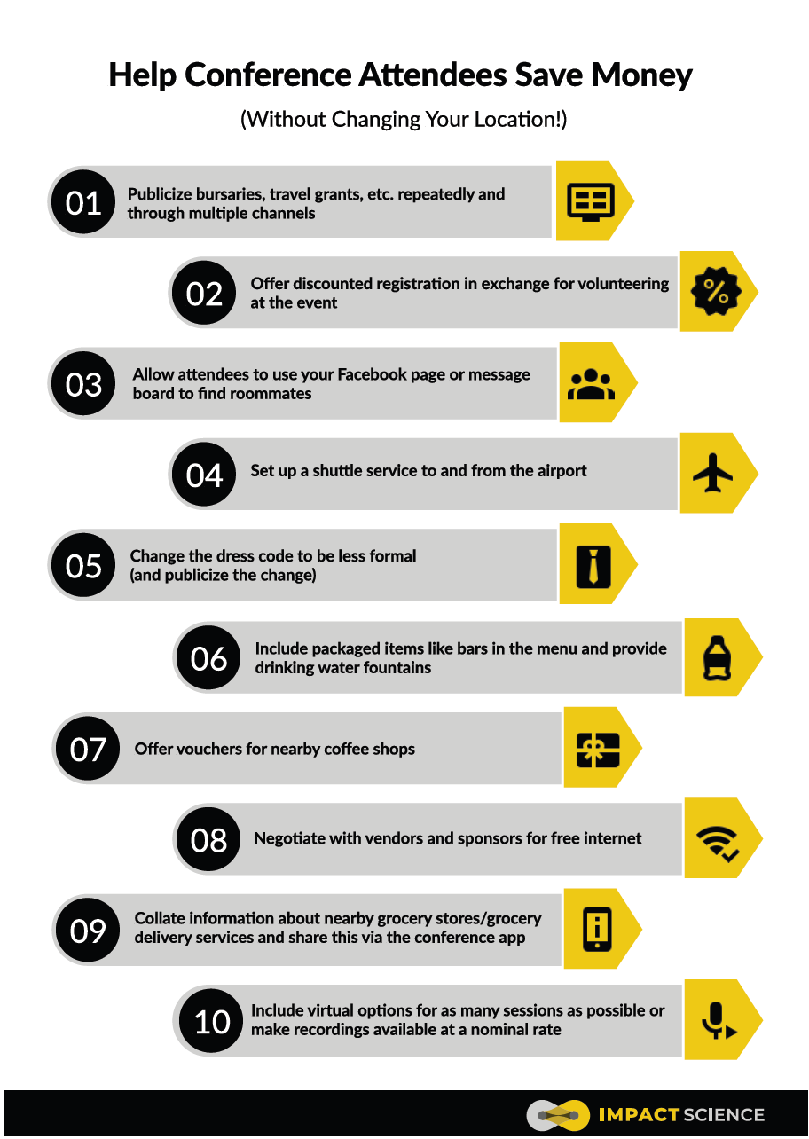 Financial difficulties can be a barrier for conference participation. Here’s how to help your conference attendees save money, even if you can’t change the conference venue–