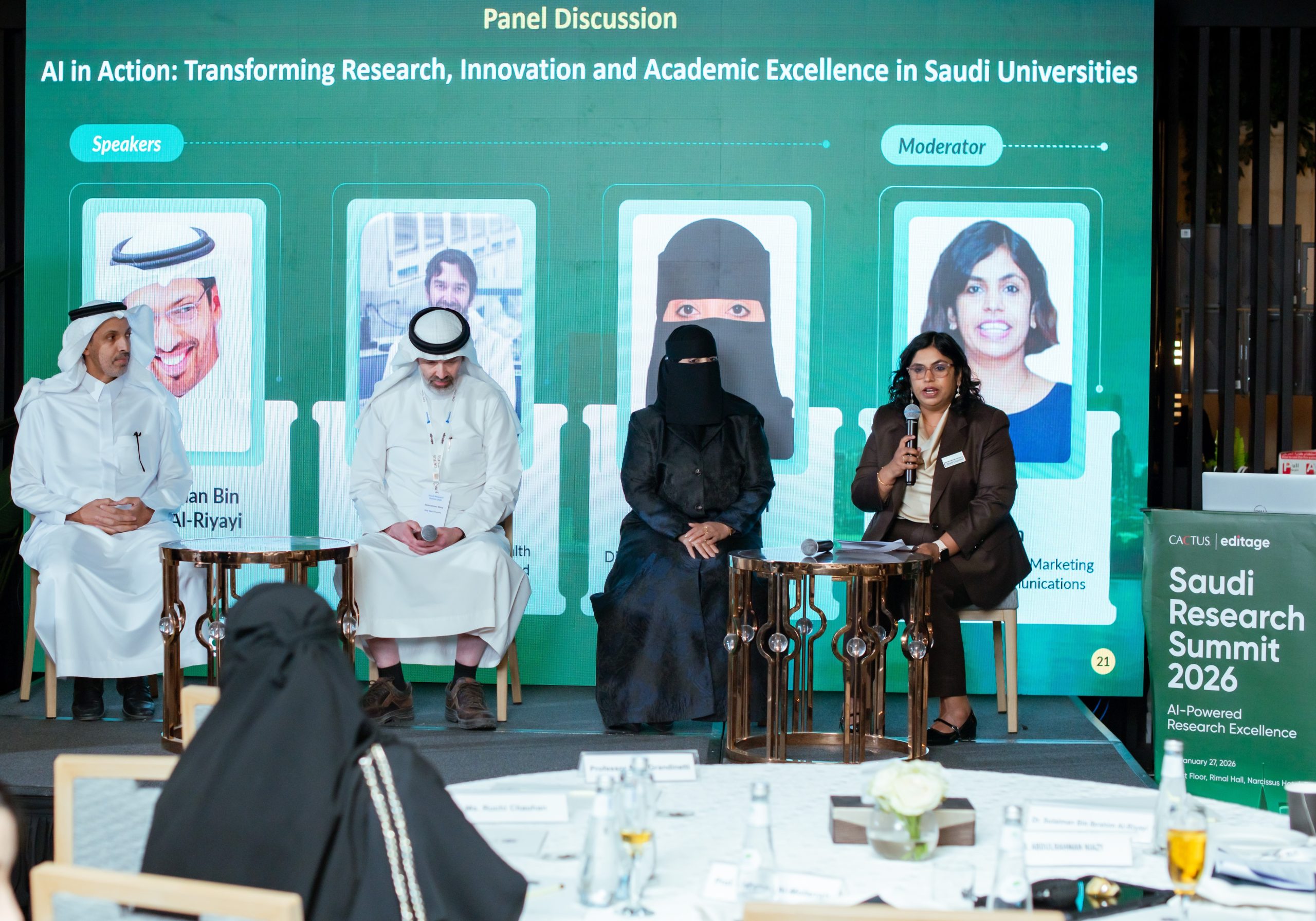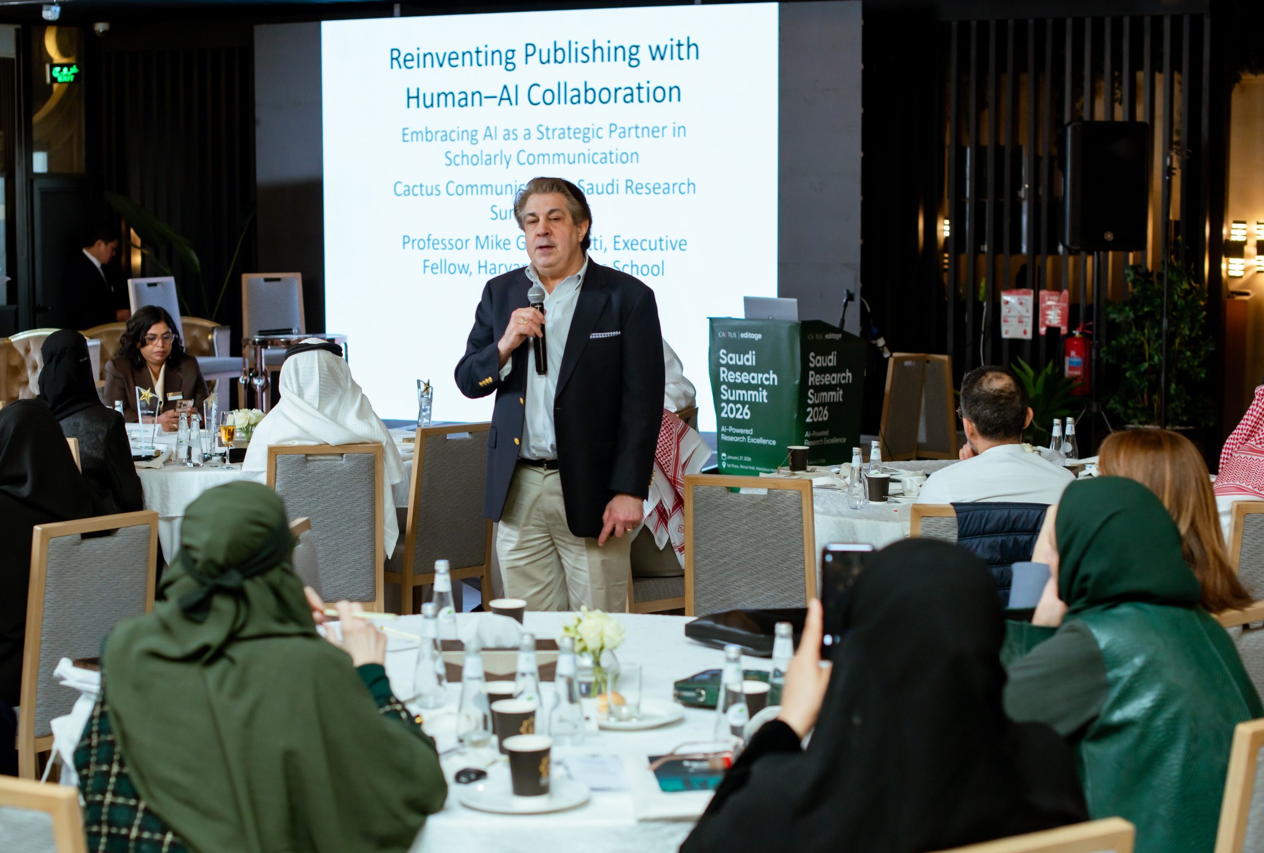 The summit featured a keynote address by Prof. Mike Grandinetti, Harvard Business School, USA, who shared perspectives on AI, innovation, and leadership in advancing national research ambitions. Following this was a panel discussion with Dr. Sulaiman Bin Ibrahim Al-Riyayi, General Director, Consultant and Expert; Dr. Abdulrahman Niazy, Director at Prince Naif bin Abdulazziz Health Research Center, King Saud University; and Prof. Fatemah Almofarrah, Director of the Scientific Research Centre, Princess Nourah Bint Abdulrahman University, moderated by Ruchi Chauhan, Vice President & Head of Marketing (RoW), Cactus Communications.